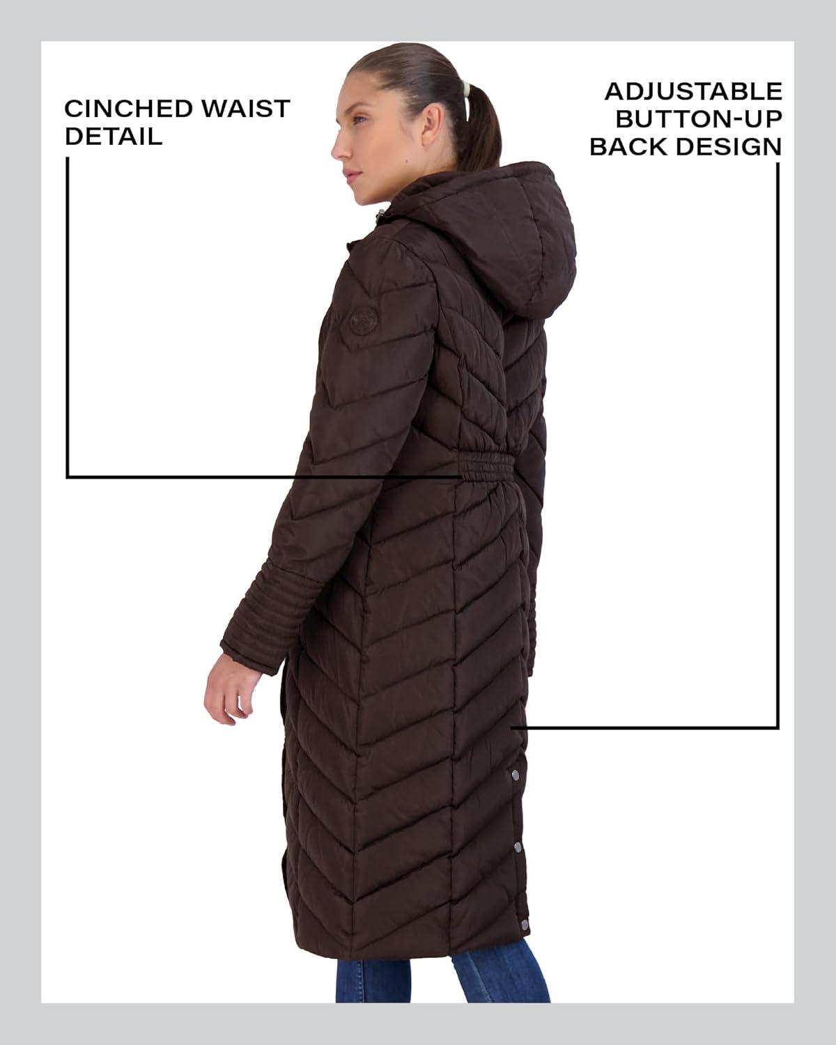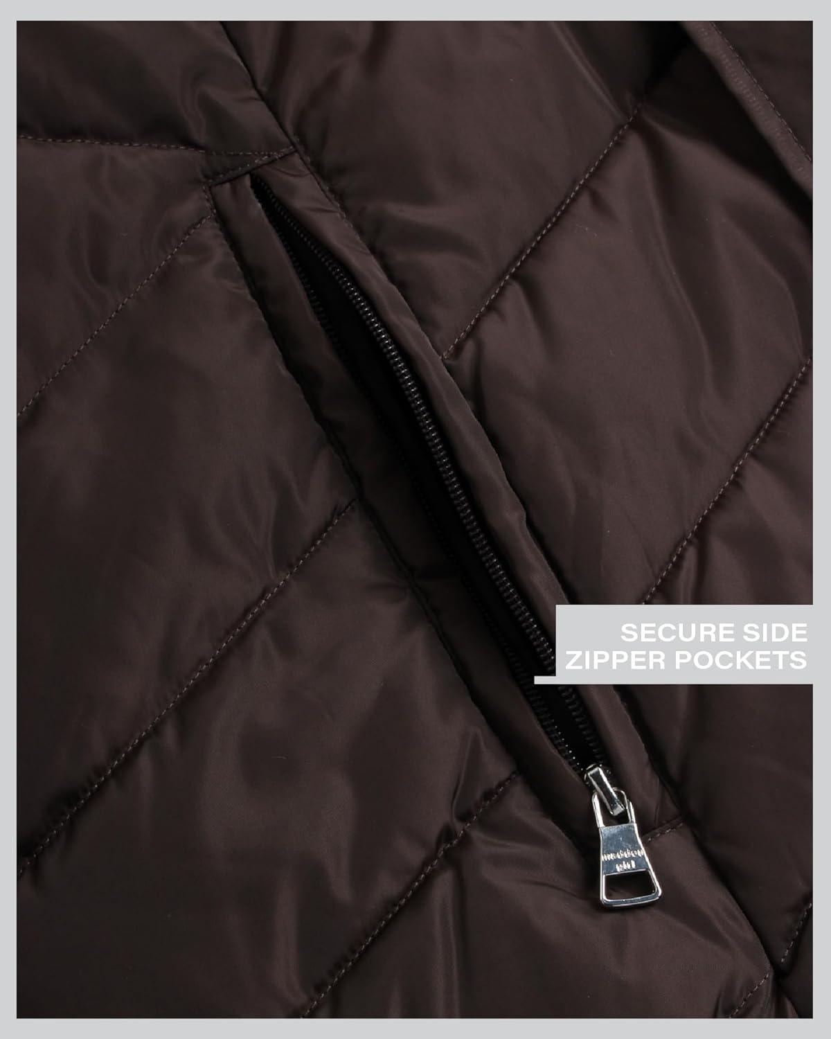 Madden Girl Womens Maxi Puffer Winter Coats - Long Quilted Jackets for Women Weather Resistant Puffer Parka Hooded Jacket(Chocolate)