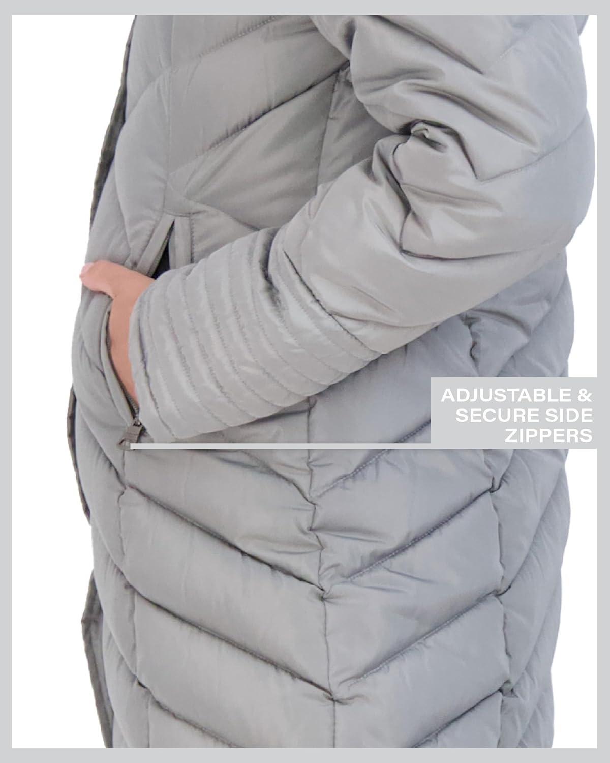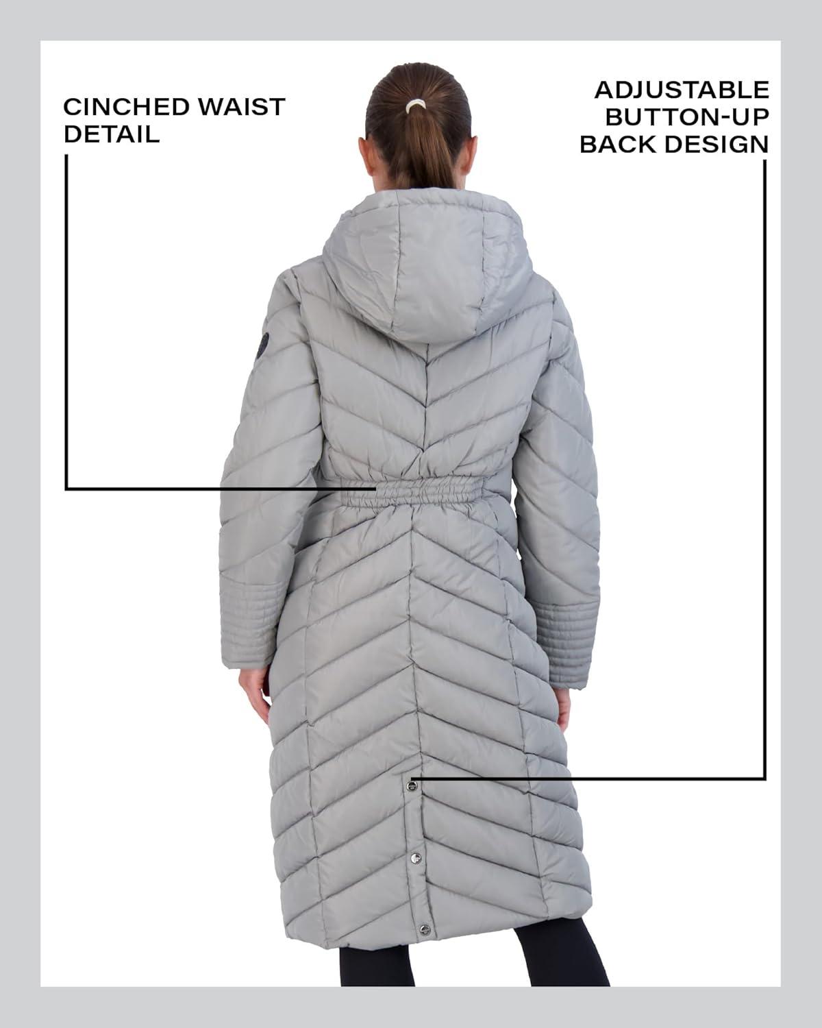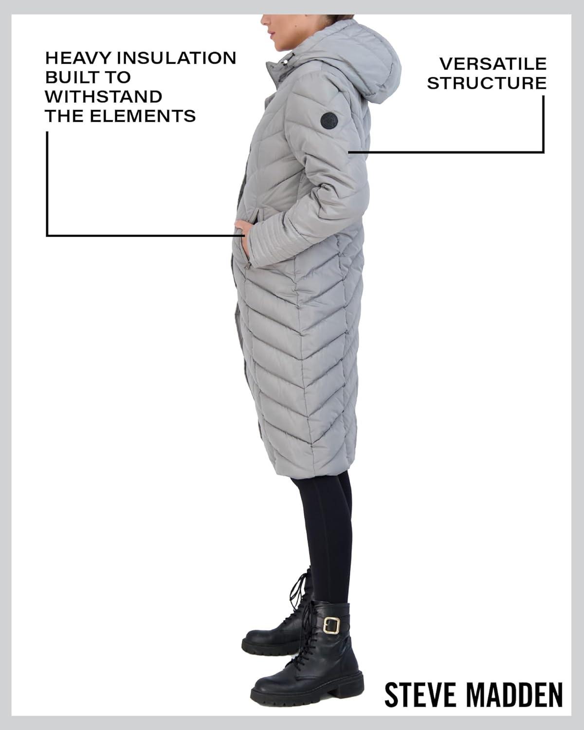 Madden Girl Womens Maxi Puffer Winter Coats - Long Quilted Jackets for Women Weather Resistant Puffer Parka Hooded Jacket(Titanium)
