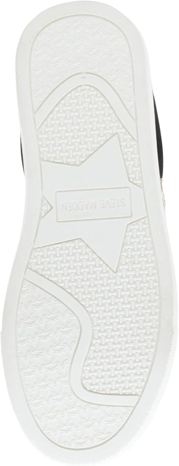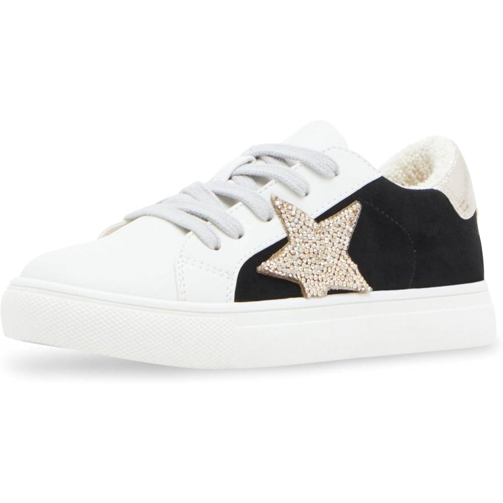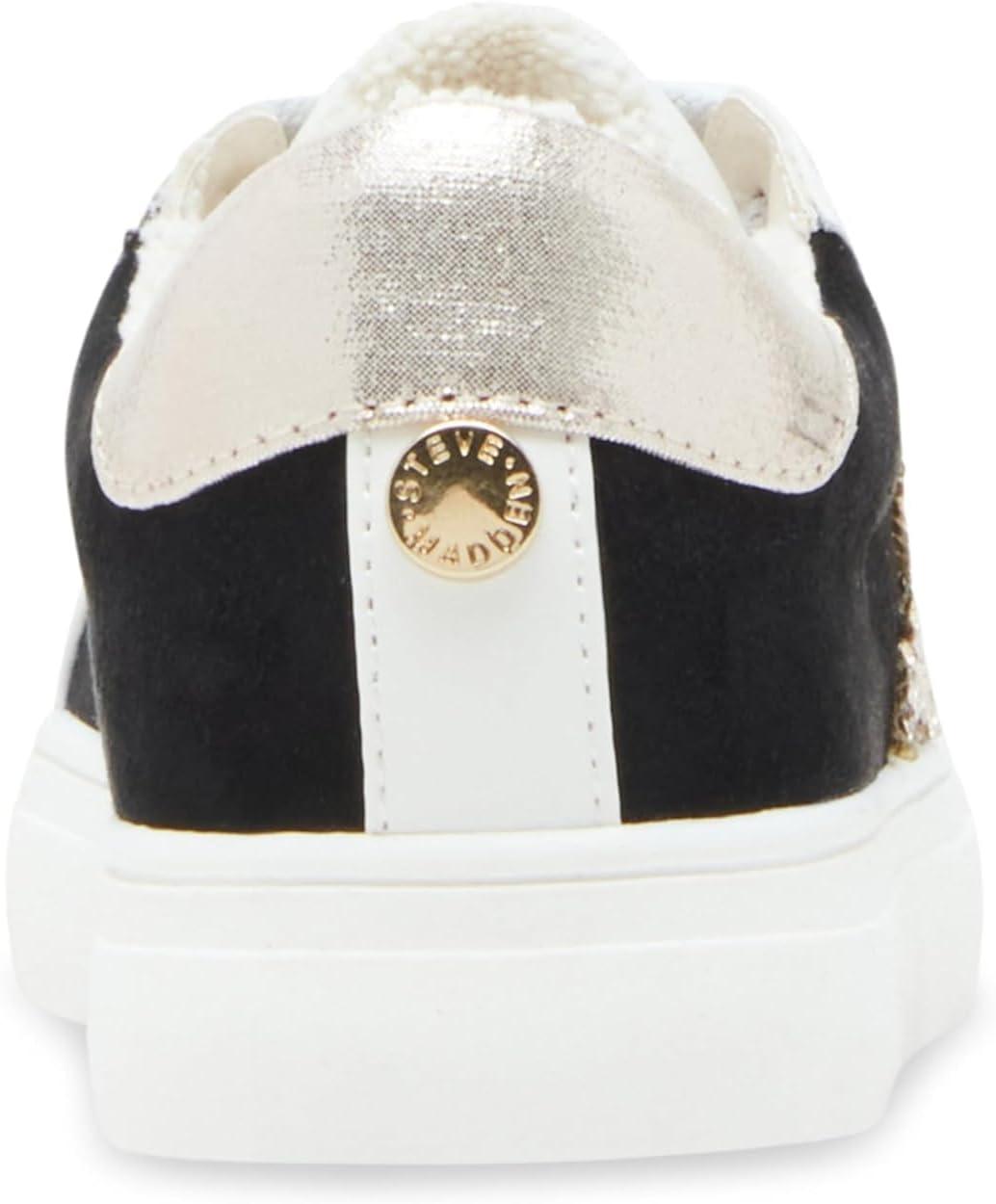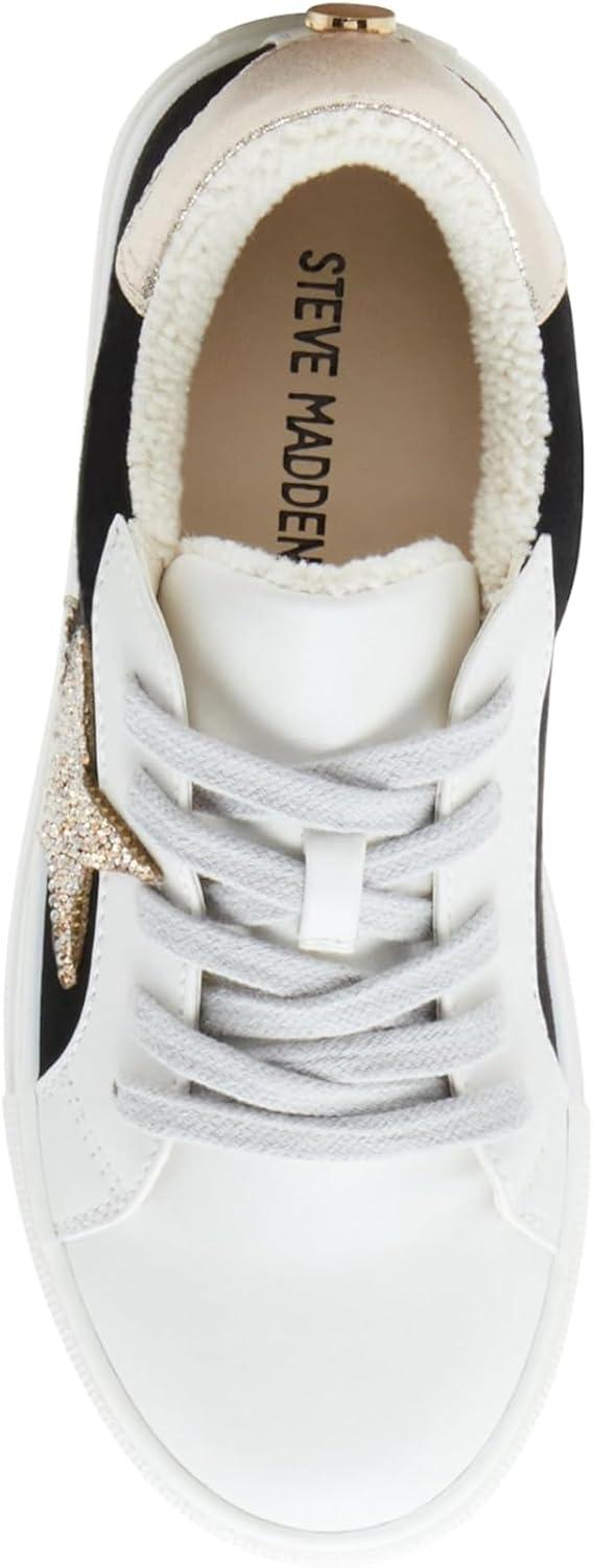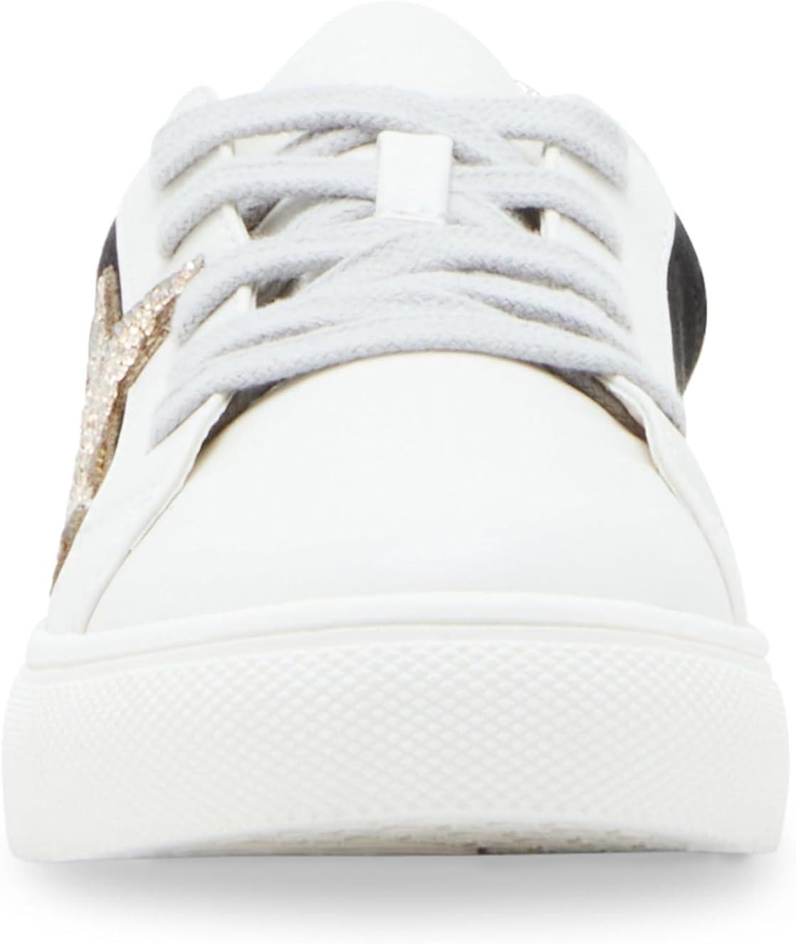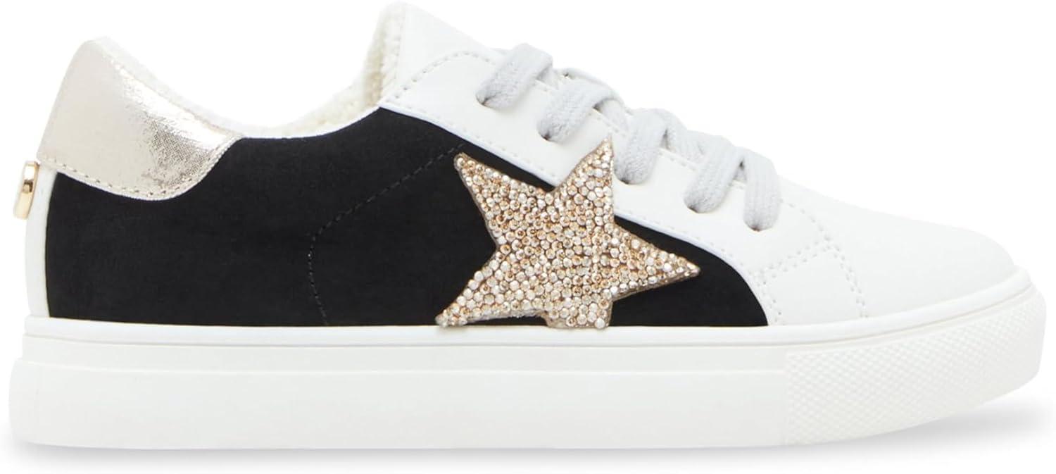 Introducing the Steve Madden Girls' Shoes Rezume Fashion Sneaker – the perfect addition to your little fashionista's wardrobe! These stylish and comfortable sneakers are designed to keep up with her active lifestyle while adding a touch of flair to her outfits. Crafted with high-quality materials, these fashion sneakers feature a durable synthetic upper that's designed to withstand the wear and tear of everyday use. The lace-up and velcro closure options provide a secure and customized fit, while the cushioned footbed ensures all-day comfort. The Steve Madden Kids Rezume Fashion Sneaker boasts a sleek and modern design that's sure to turn heads. This classic silhoette comes in a variety of color options featuring glitter and metallic detailing, creating a chic and edgy look that's perfect for any occasion. The versatile design pairs well with jeans, leggings, dresses, and more, making it a must-have in any stylish girl's closet. Whether she's running around the playground or hanging out with friends, the Steve Madden Girls' Shoes Rezume Fashion Sneaker will keep her looking and feeling her best. So why wait? Add these sneakers to your cart today and let your little one step out in style!