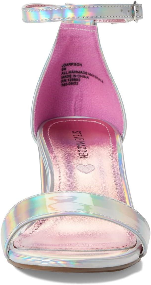 Elevate your child's shoe collection with the stylish and comfortable Steve Madden Girls' JCarrson heeled sandal. Featuring a minimalist design with a sturdy block heel and adjustable ankle strap, these sandals are perfect for dressing up any outfit. The cushioned footbed provides all-day comfort, making them a great choice for special occasions or everyday wear.