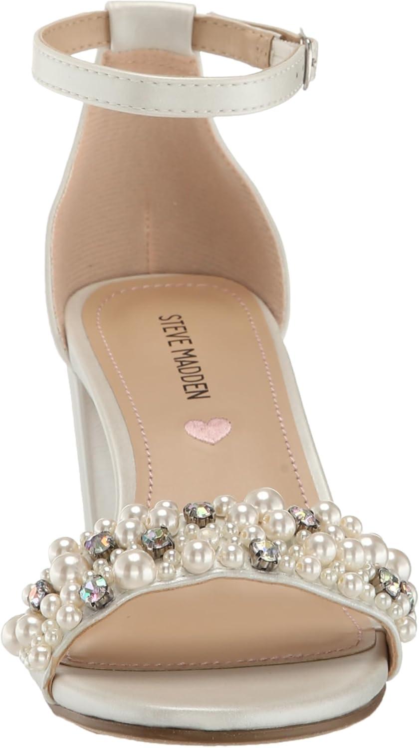 Elevate your child's shoe collection with the stylish and comfortable Steve Madden Girls' JCarrson heeled sandal. Featuring a minimalist design with a sturdy block heel and adjustable ankle strap, these sandals are perfect for dressing up any outfit. The cushioned footbed provides all-day comfort, making them a great choice for special occasions or everyday wear.