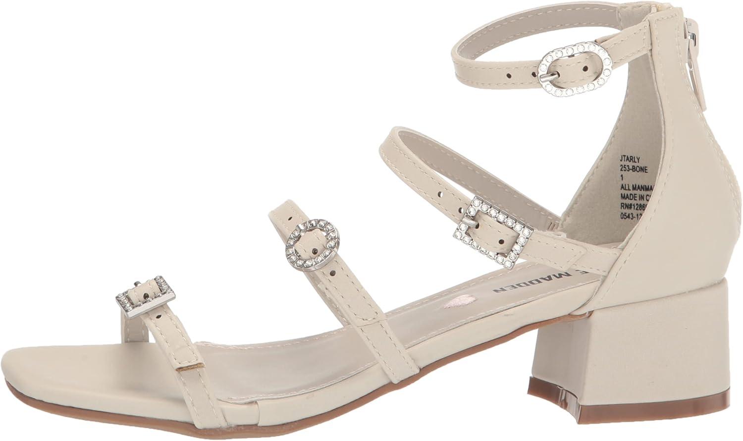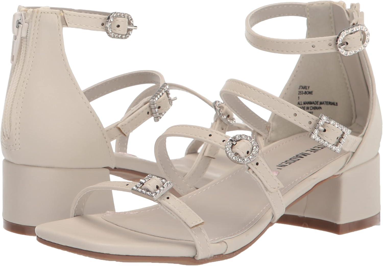The TARLY sandal from Steve Madden is a seriously stylish approach to kids' dress shoes. This block heel style features four slim buckle straps down the front, ending in a chic open square toe.