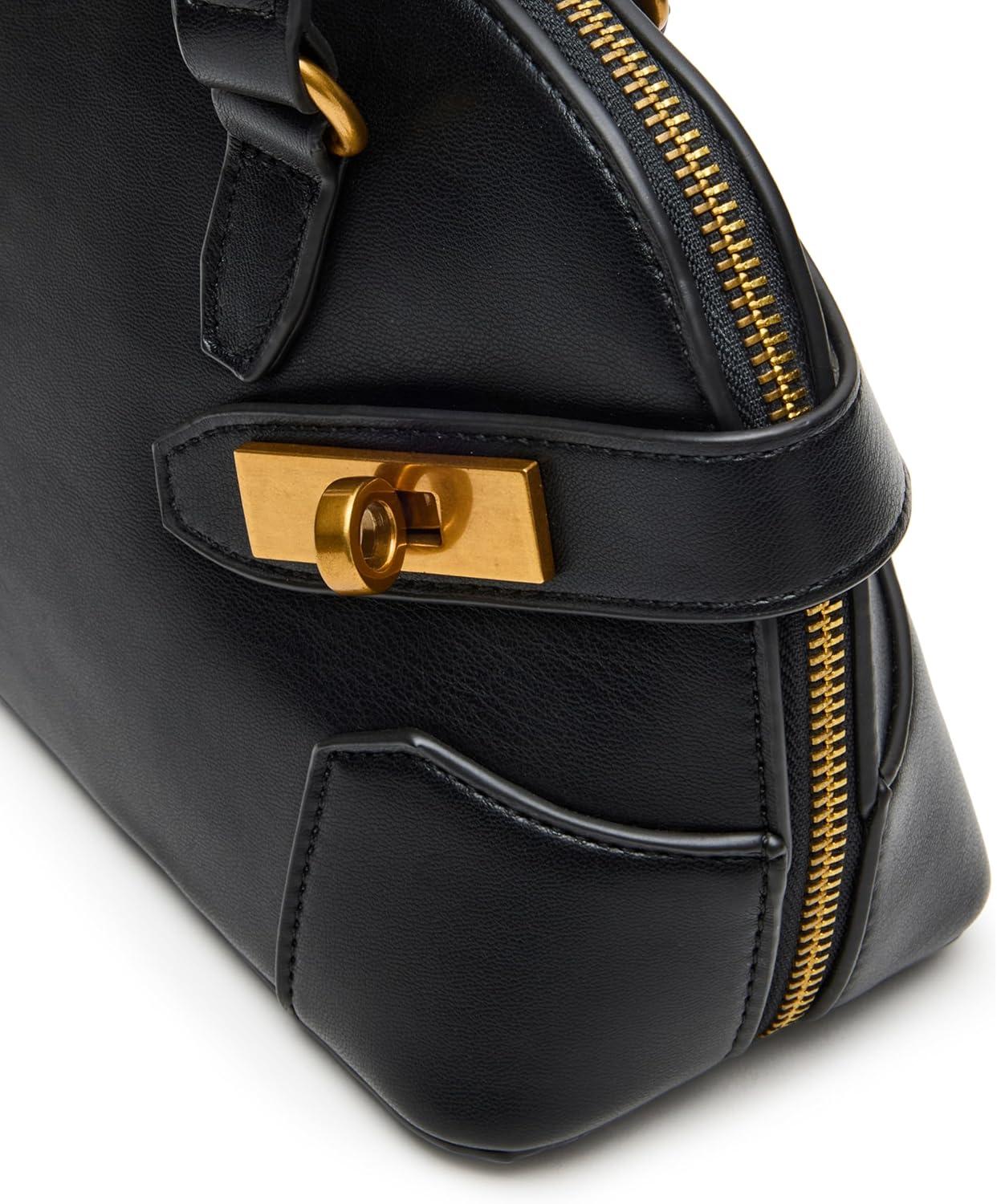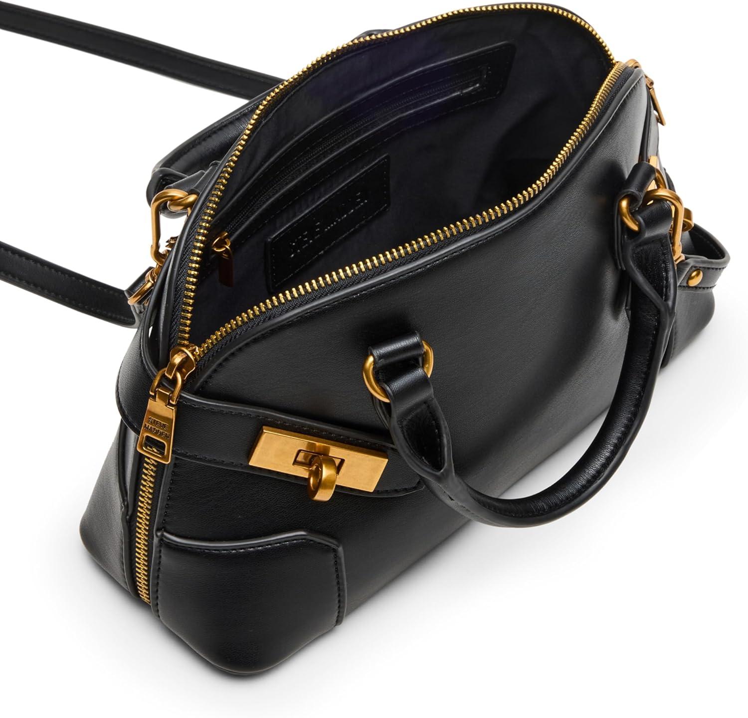 Our Joshua hug satchel features a double zip closure and turnlock buckles to give you just a little edge. Wear it as a top handle or utilize the crossbody strap.