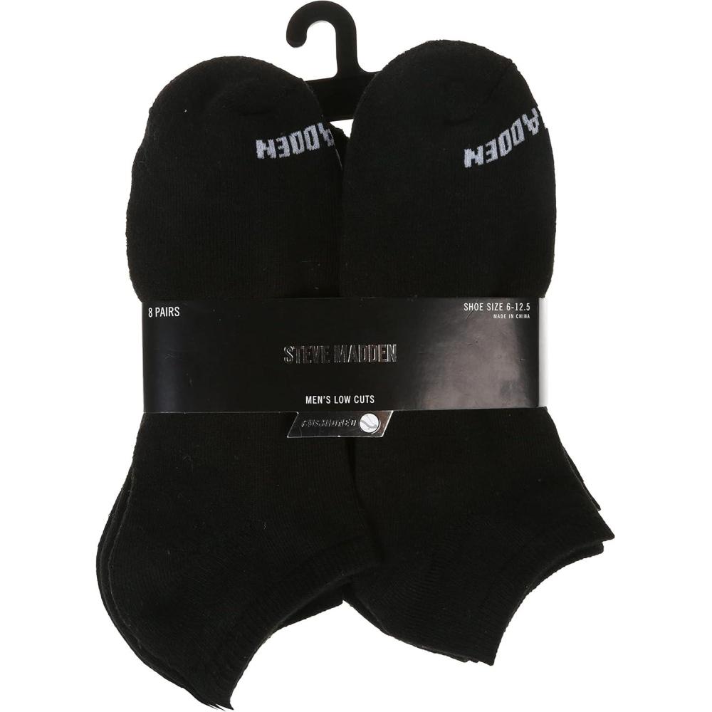 Steve Madden Men's 8pk Solid Low Cut, 1/2 Cushion(Black)