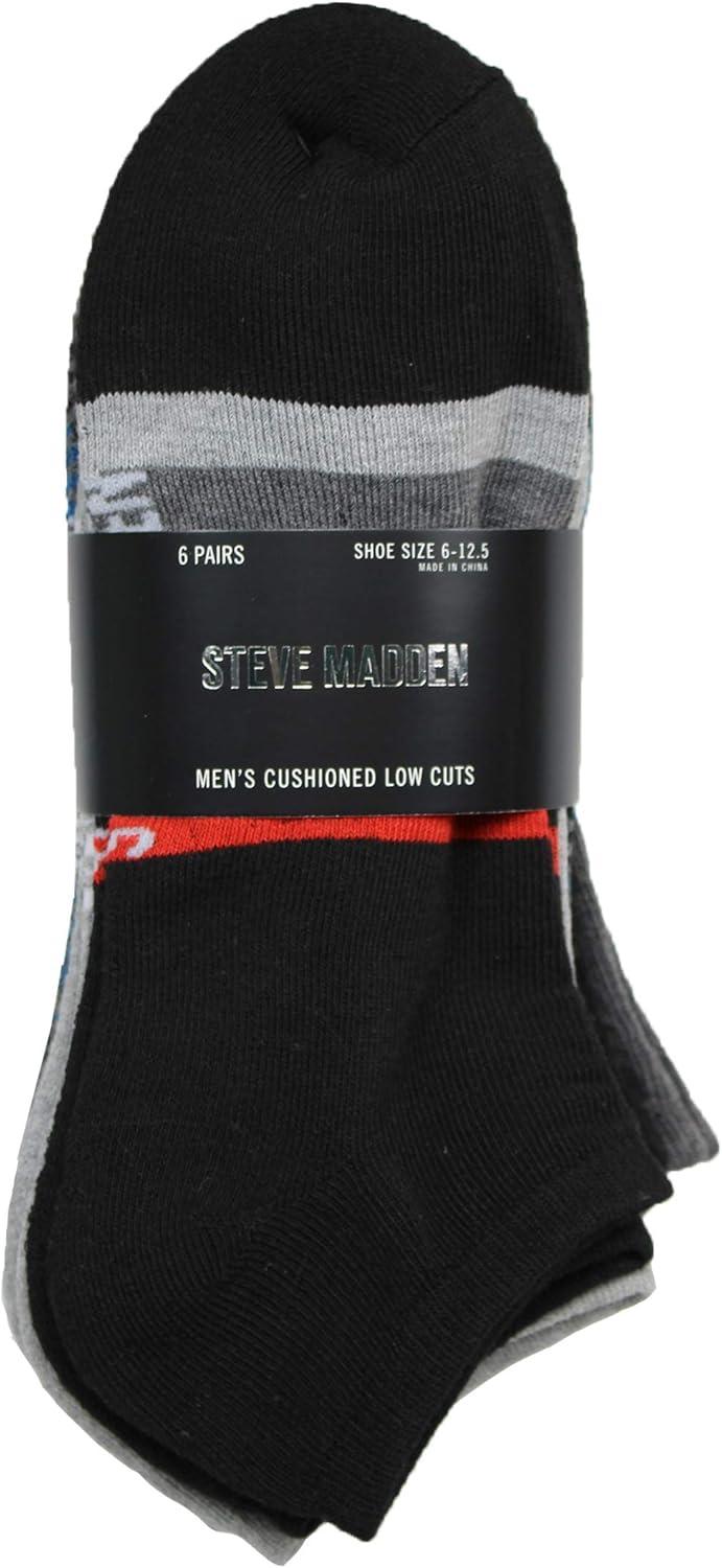 Steve Madden's low-cut socks for men. Our Men's ankle socks are perfect for all seasons. Made with cushioned fabric and features soft padding for excellent comfort. It also has a reinforced heel and toe for long-lasting durability. These can be worn with any shoes and athletic shoes, such as hiking shoes, basketball shoes, golf shoes, and sneakers. They can be worn anywhere, from the office to a special occasion and gym. The low cut sits below the ankle, ideal for the sockless look, and helps to provide a barrier of protection between your delicate feet and your favorite shoes. Whether you choose a thin knit pair for dress shoes or a cushioned pair to wear with sneakers during your workouts, this pair is ideal for your feet. Mesh ventilation in the arch can release heat and keep your feet dry all day, helping to absorb moisture and sweat quickly. Easy to care socks, Machine Wash. Turn inside out before washing, then hang or lay flat to dry or tumble dry low. This helps preserve their color, shape, and quality for as long as possible.