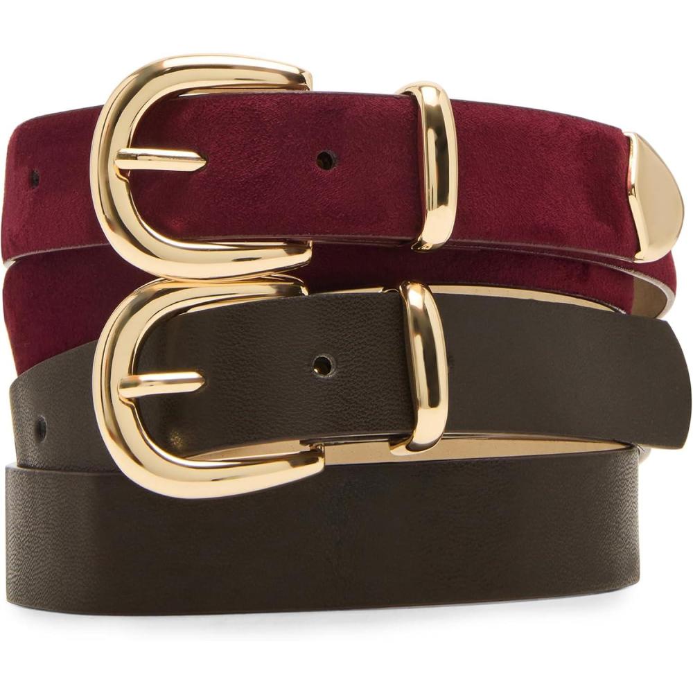 Steve Madden womens 2 Pack Women Belts for Jeans Dresses Pants Ladies Waist Belt(Bordeaux)