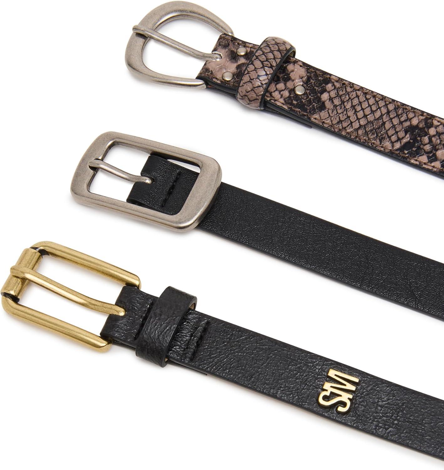 As a fashion-forward company, Steve Madden offers a diverse collection of belts, ranging from classic and timeless designs to trend setting materials and hardware. We believe everyone should have one of our belts in their rotation to complement their unique style, which is why we offer a wide selection in a variety of colors, textures, and sizes to ensure the perfect fit for every individual. If you’re dressing up for a special occasion or just adding a finishing touch to your look, our belts are perfect to take you from casual to formal, day or night. They’re a must-have accessory for your wardrobe!