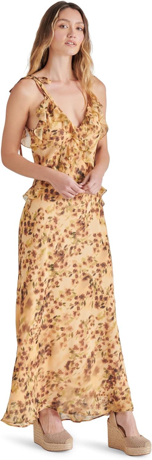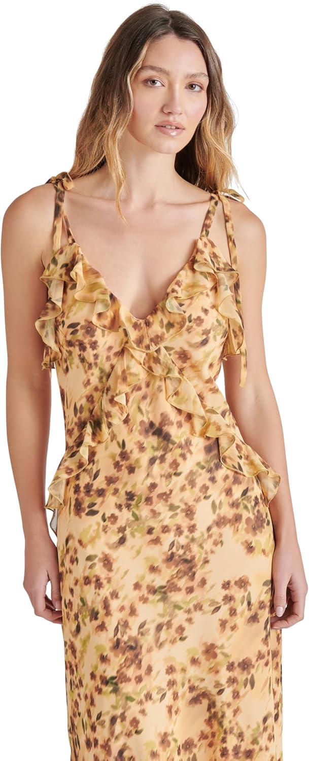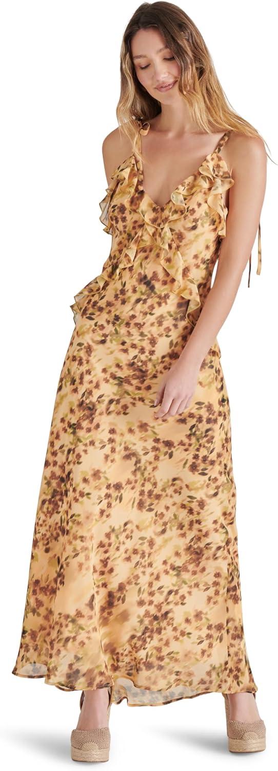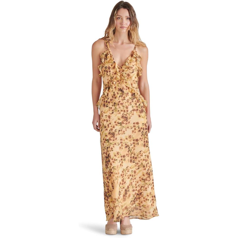 V-neck maxi dress with ruffle detail in gossamer woven.