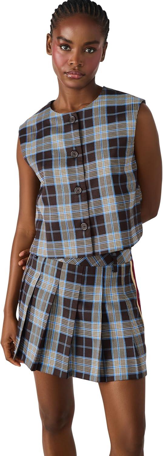 Steve Madden Women’s Alessa Top(Brown Plaid)