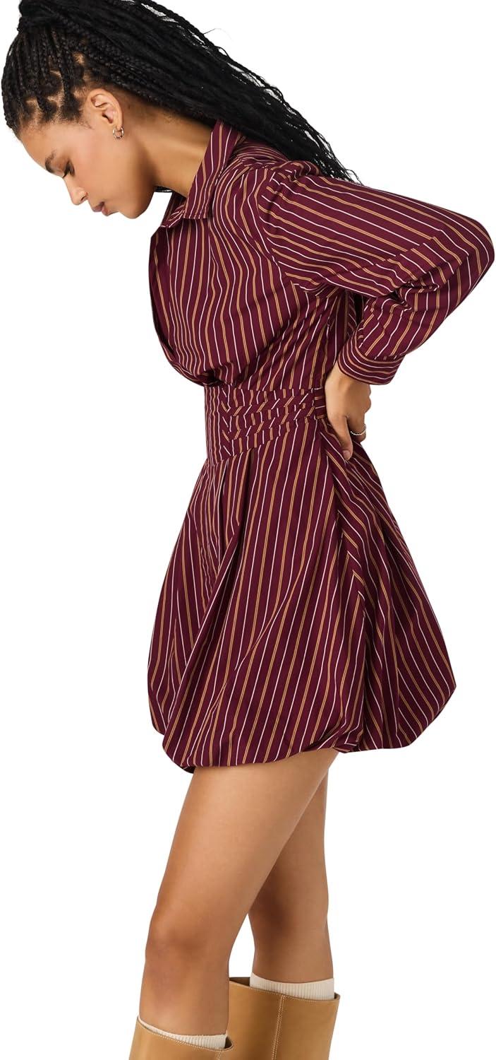 Mini dress with corset waist detail, back smocking & bubble hem in striped poplin