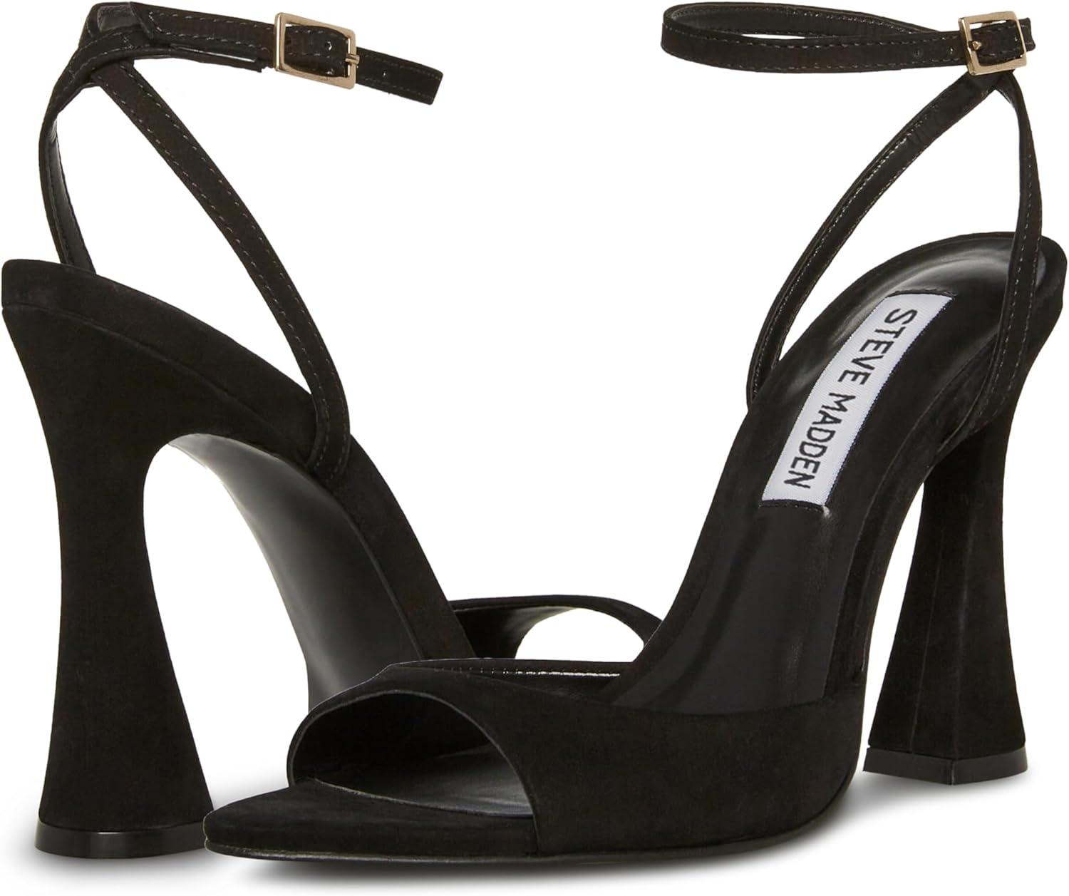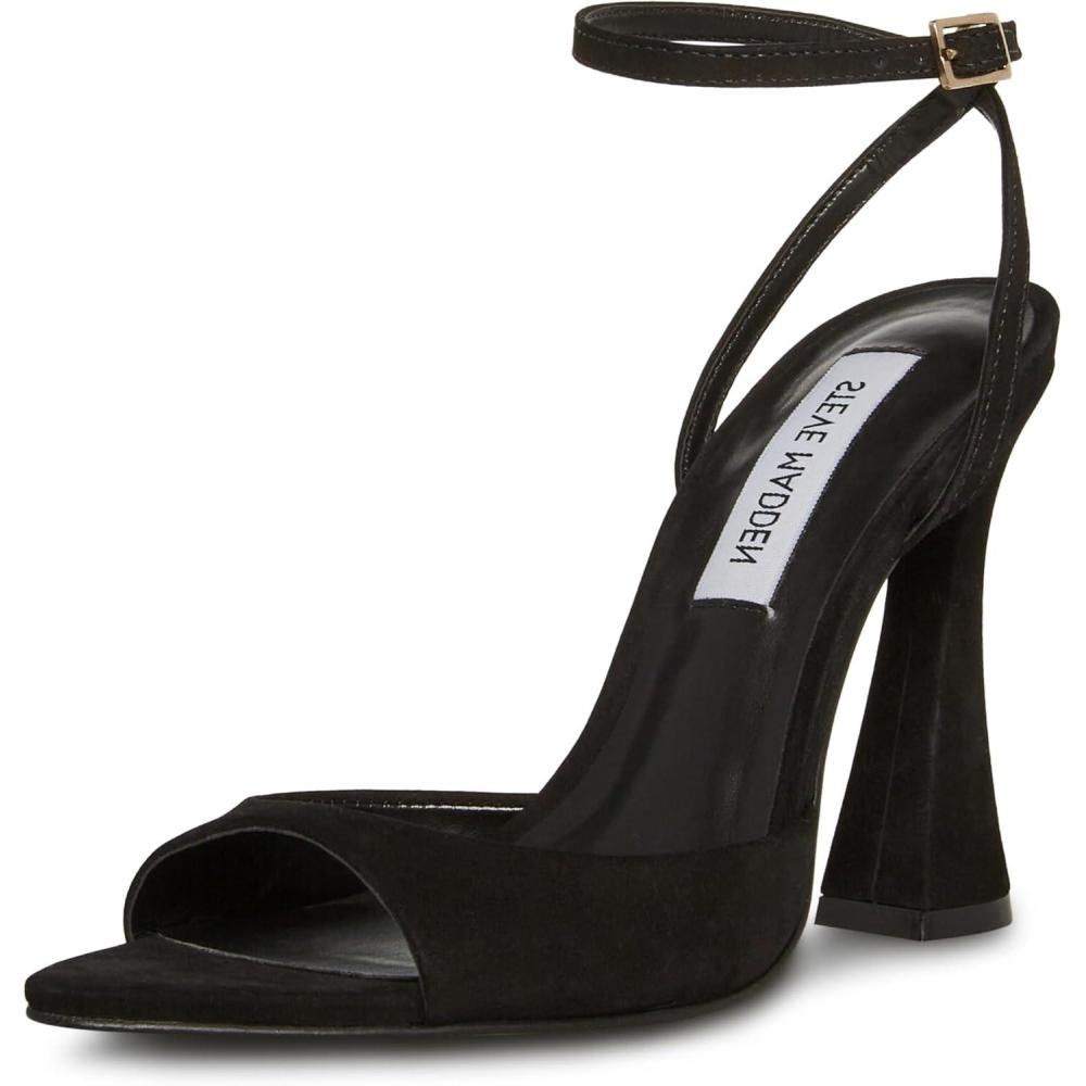 Look glorius int he flawless beauty of the Steve Madden® Beki flared heel sandals designed with an open toe and buckle detail running along a sleek ankle strap.