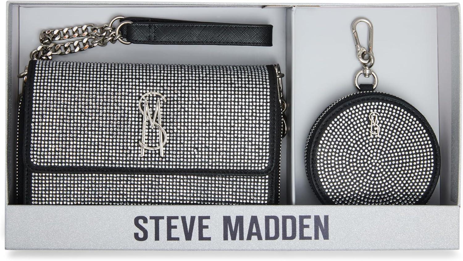 STEVE MADDEN Women's Carina-G Wallet Crossbody with Pouch Gift Set, Black, One Size