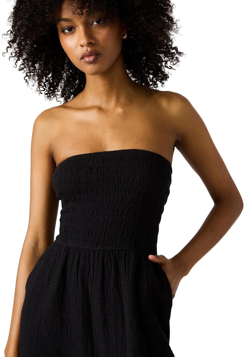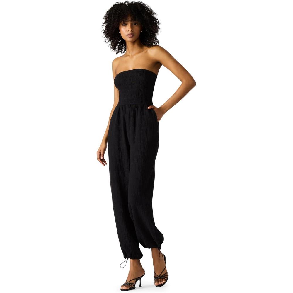 Strapless smocked bodice jumpsuit with jogger pant in stretch cotton gauze