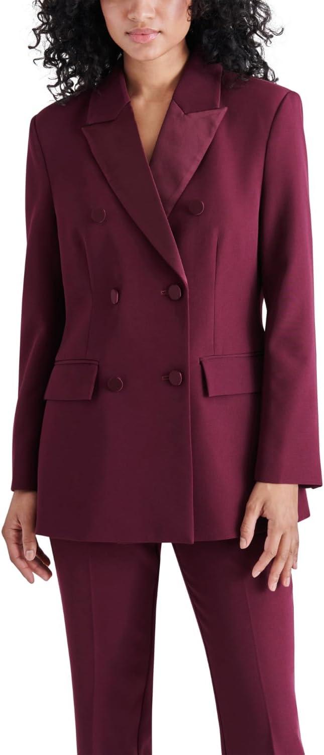 She's fancy. Haley is a chic, double-breasted tuxedo suiting blazer with a lustrous tonal satin lapel and flap pocket detail.