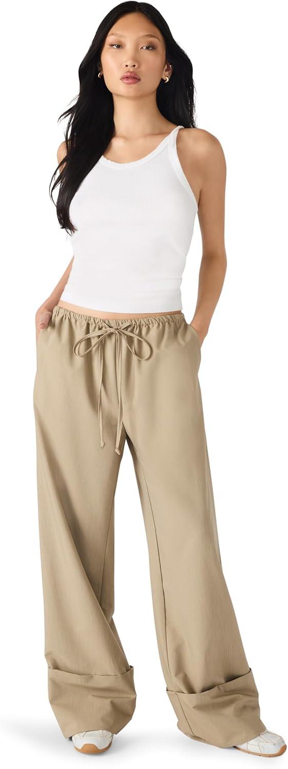 Pull on pant with tie waist and high cuffs in plaid suiting