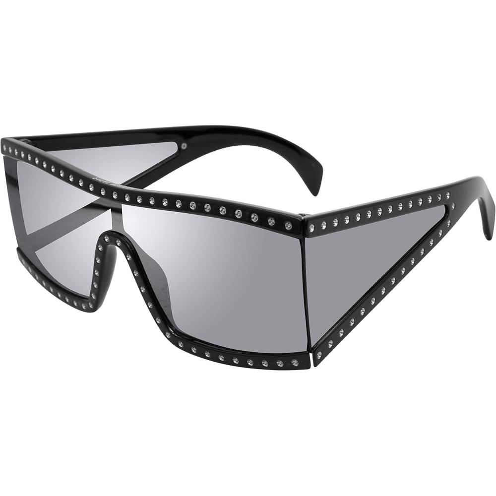 Steve Madden Women’s Jagger Sunglasses(Black/Glitter/Solid Smoke/Silver Mirrored)
