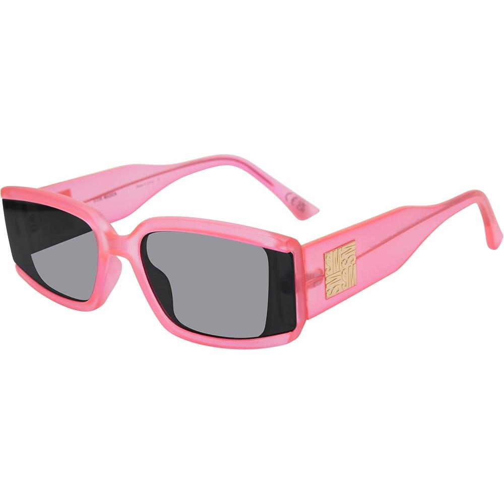Steve Madden Women’s Jaxon Sunglasses(Crystal Neon Pink/Solid Smoke)