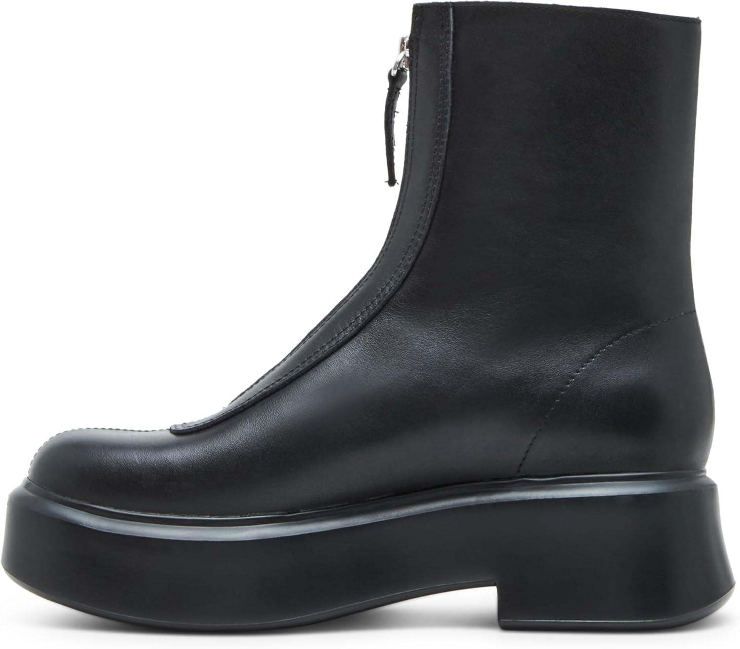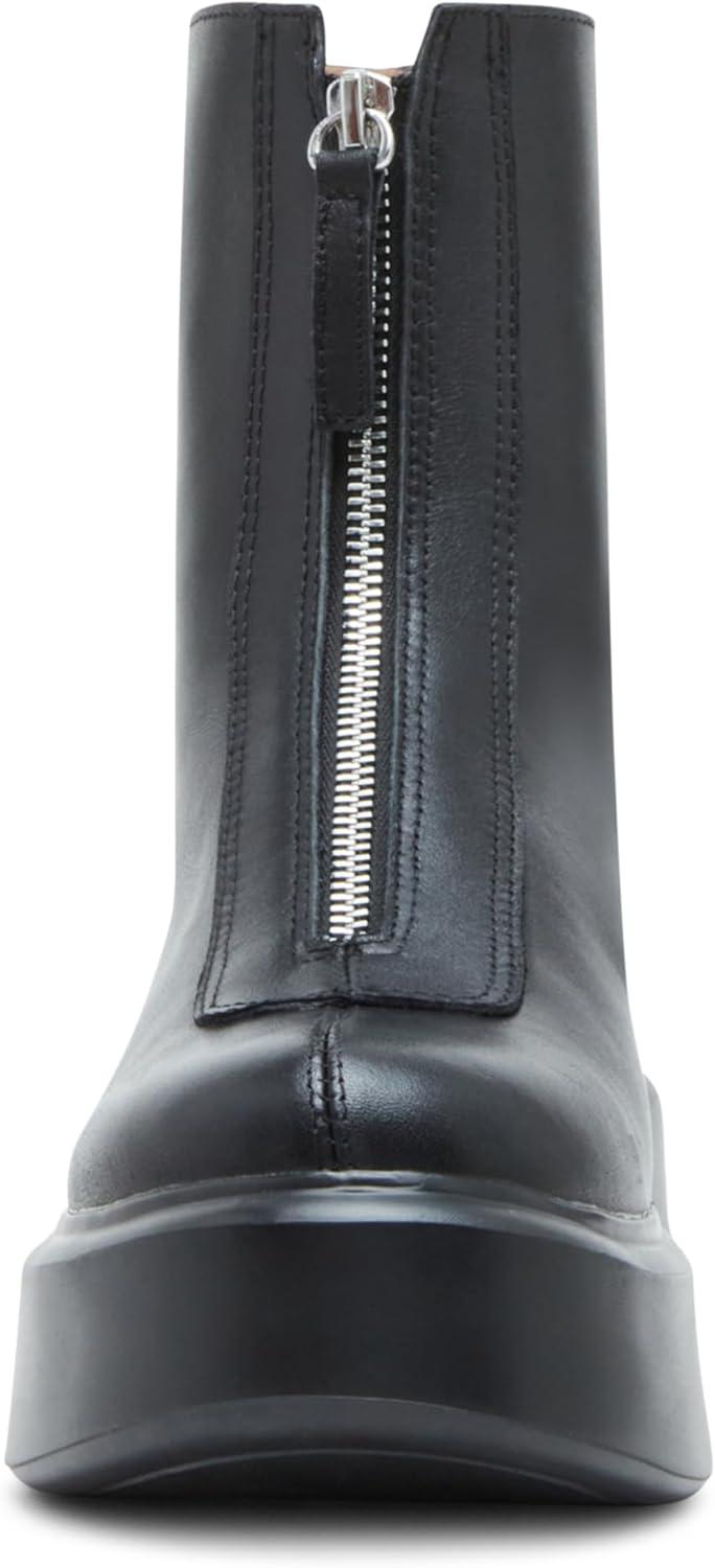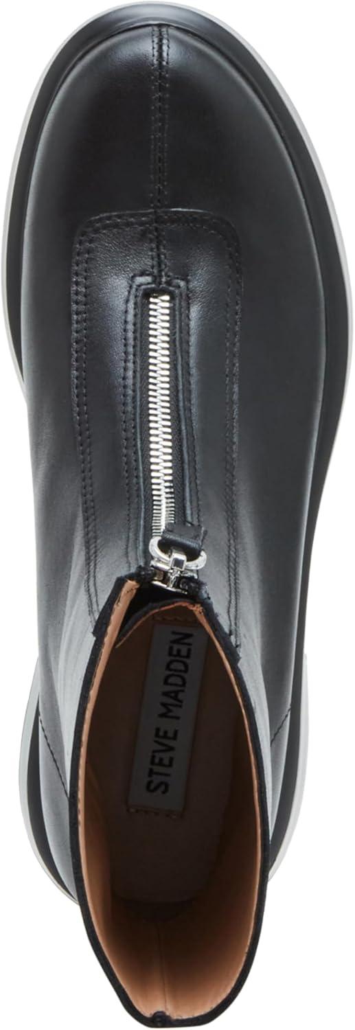 Experience style and comfort with the JONES ankle boot. The sleek black design and front zipper detail add a touch of modernity to any outfit. Made with durable leather, these ankle bootiesare perfect for everyday wear.