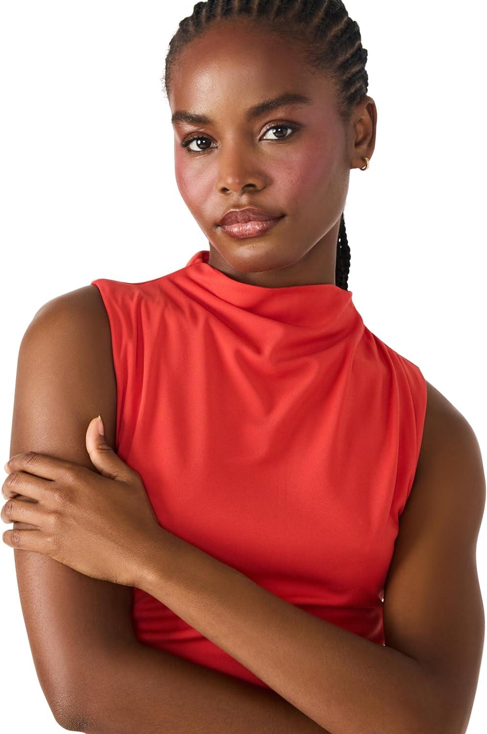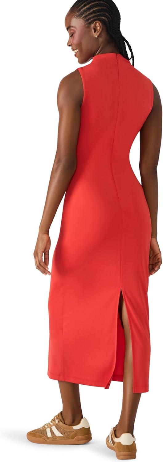 Sleeveless mock neck midi dress with ruching detail in solid matte jersey