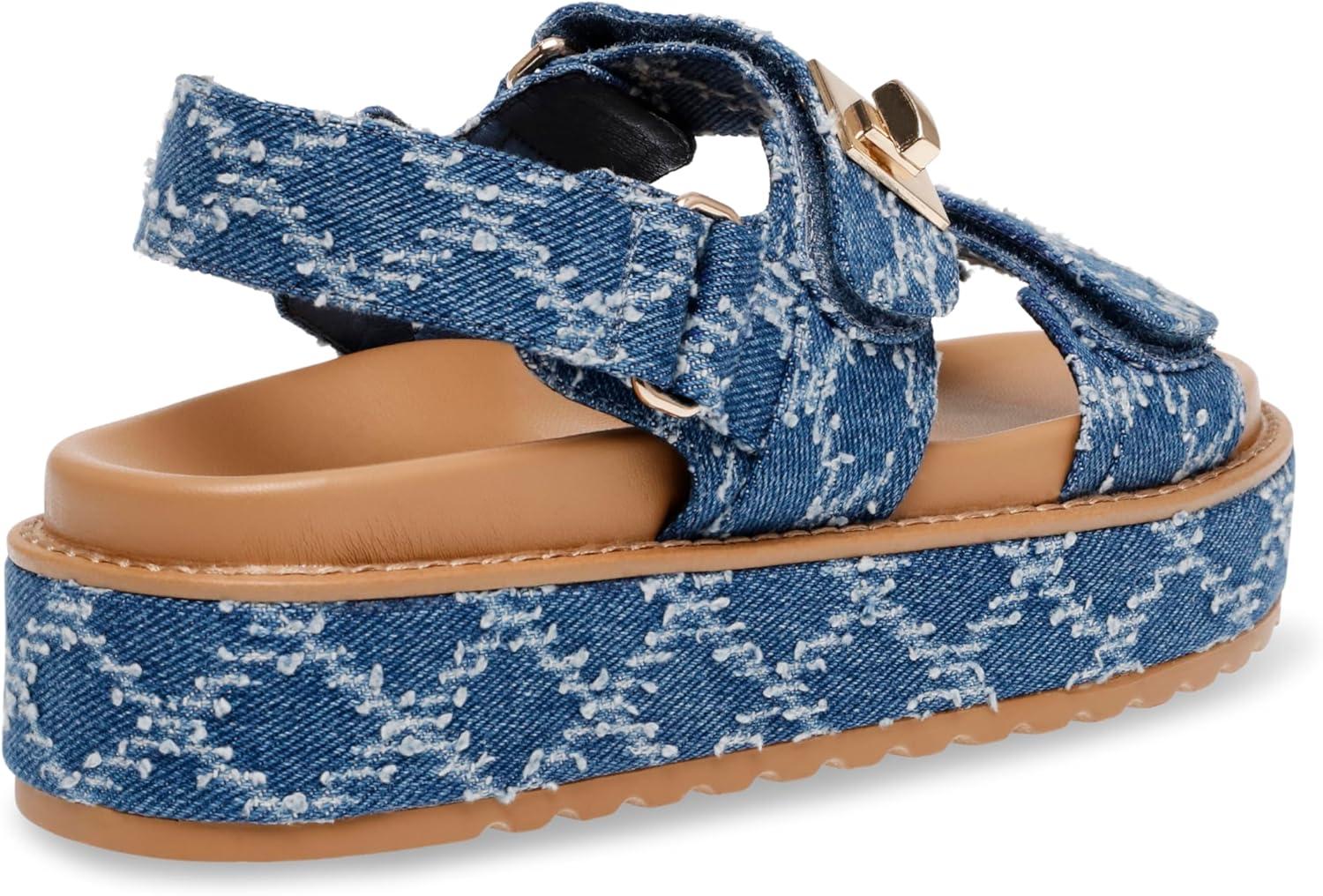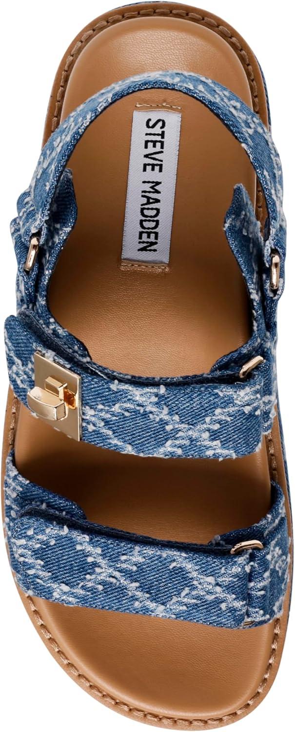 Steve Madden womens Gracel Flat Sandal(Denim)