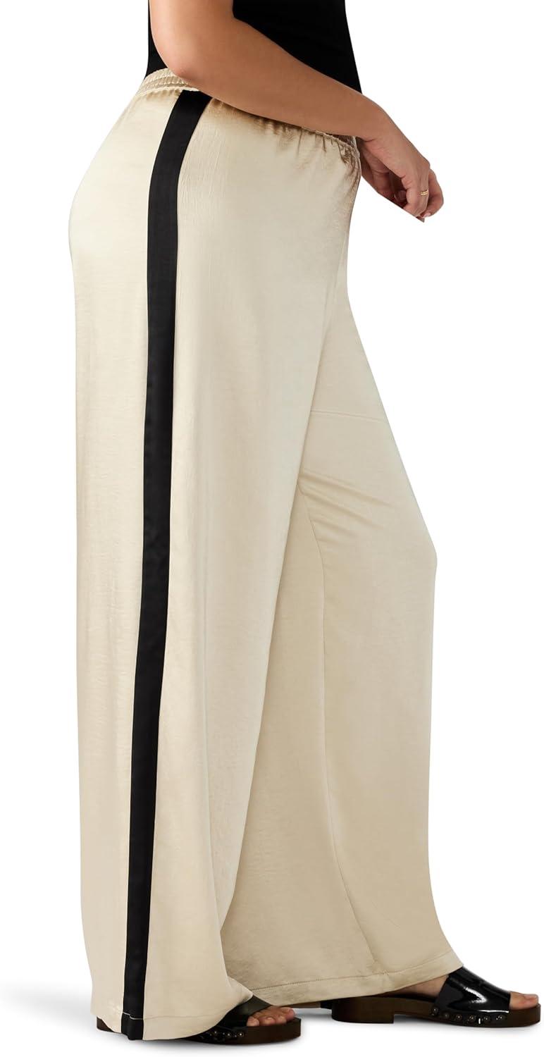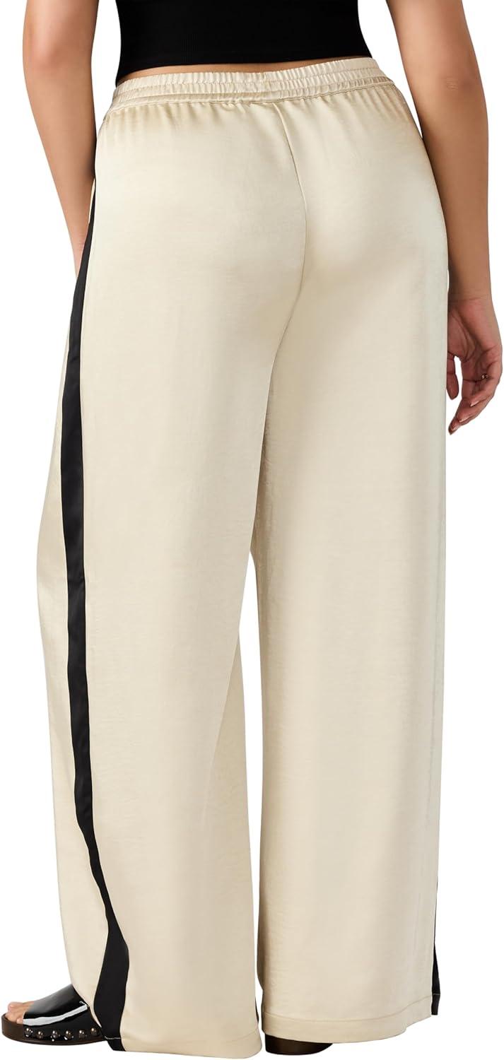 Pull on track pant with side stripe in heavy satin