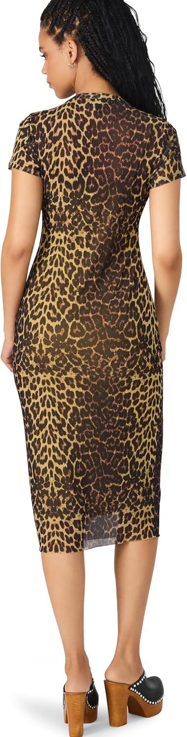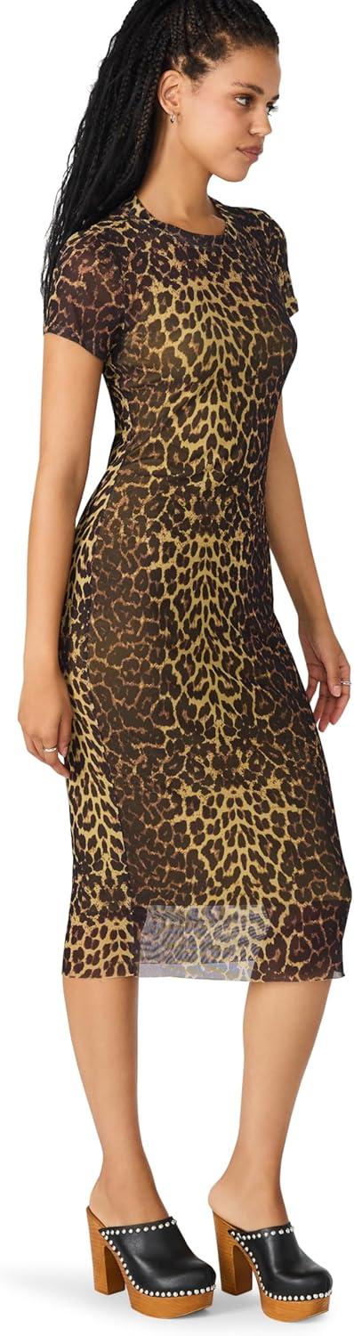 Short sleeve midi dress in “Fatigue Cheetah” printed mesh