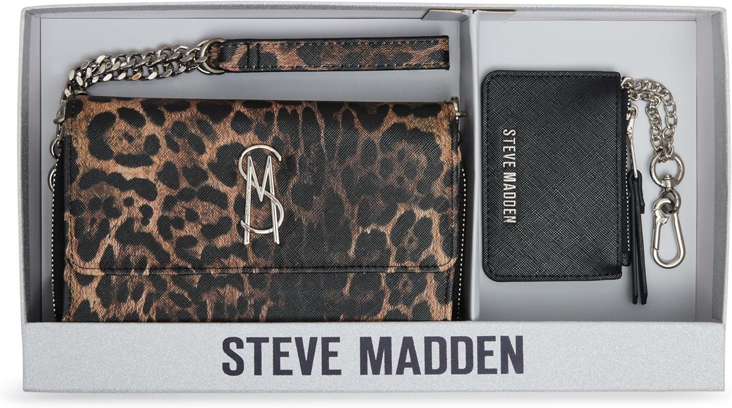Steve Madden womens Steve Madden Carina-b Wallet Crossbody With Pouch Gift Set(Leopard)