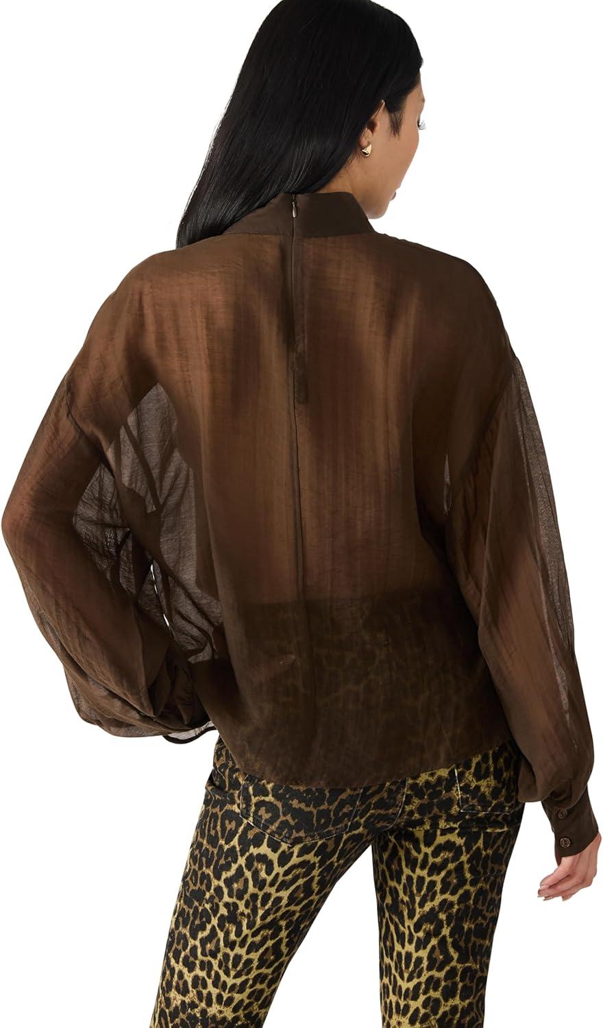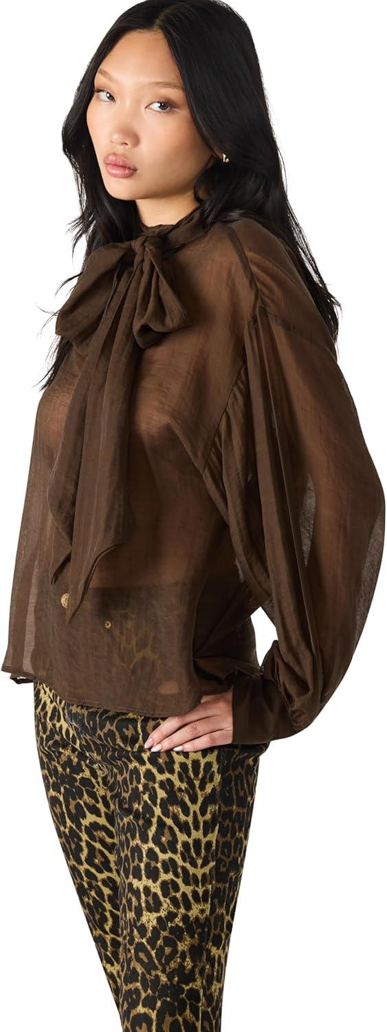Bow tie neck blouse with bishop sleeve in gossamer woven