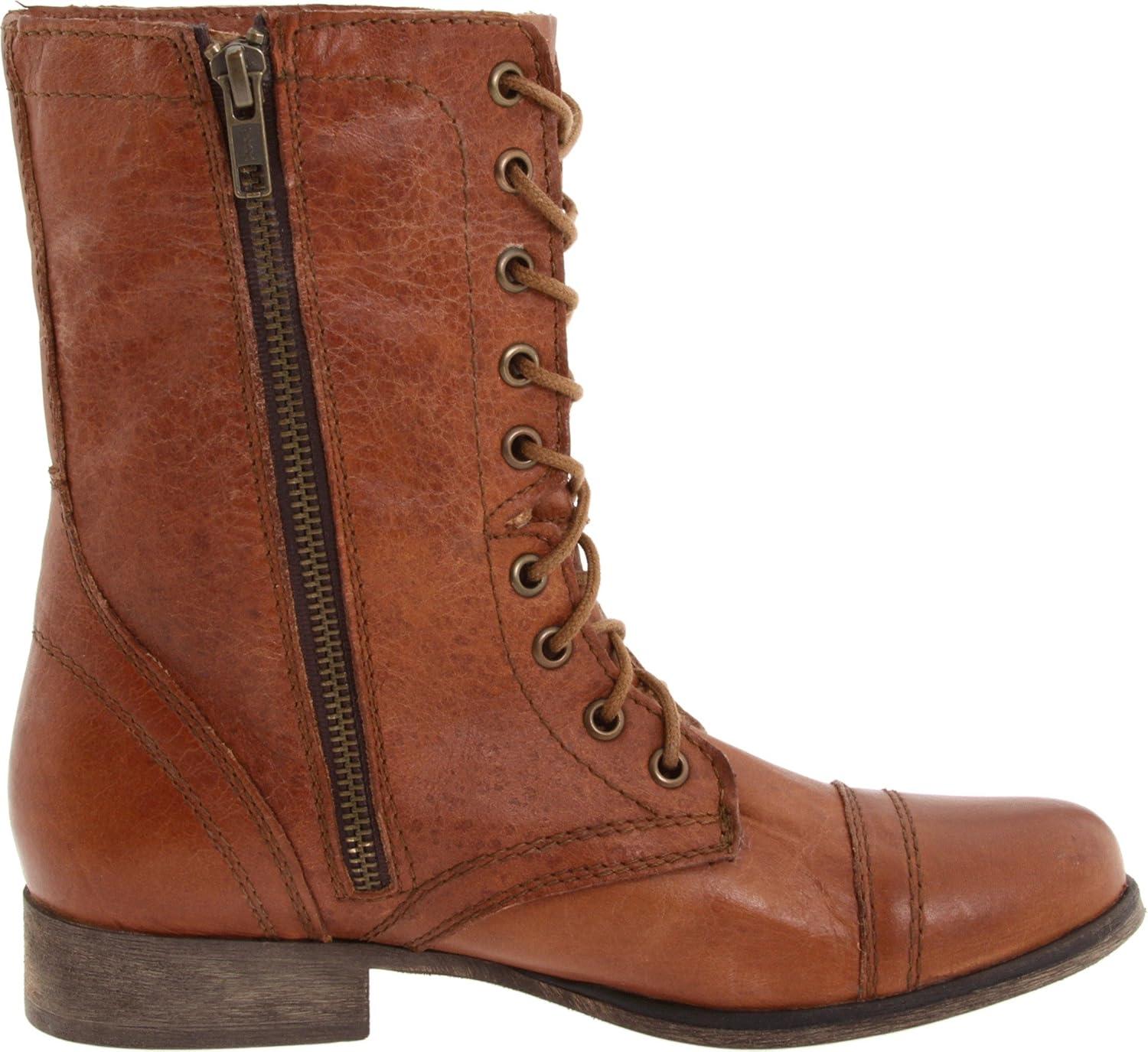 Steve Madden Womens Troopa Leather Lace Up Combat Boots(Beige)